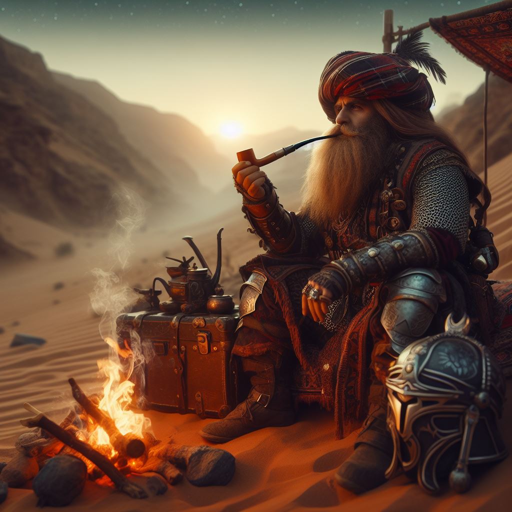Gdy słońce na pustyni chyliło się powoli ku zachodowi, karawana zatrzymała się po długiej, męczącej podróży i wszyscy jej uczestnicy zabrali się za przygotowywanie obozu. Już zanim zapadł całkowity zmrok, ognisko płonęło wysoko i zmęczeni wędrowcy zasiedli dookoła, wyciągając ręce w stronę ognia. Ciepło płomieni przyjemnie koiło przebijając się przez zimno nocy i wprowadzało w powolny trans wszystkich, którzy czekali aż potrawka w zawieszonym nad ogniskiem kociołku będzie gotowa do spożycia. Jak zawsze w takich chwilach, wyczuwając tę chwilę oczekiwania dzieci opadły przewodnika grupy, błagając o kolejną historię. Przywódca napchał suszonego bakchunu do fajki, przypalił, zaciągnął się i wypuścił powoli dym. Uśmiechnął się w ich stronę: Historię? Niech będzie, posłuchajcie zatem legendy o Czerwonej Wieży, o magii, przygodzie, poświęceniu, oddaniu i o wielkich bohaterach, którzy rzuceni w wir wydarzeń odmienili losy tej krainy. A było to tak…
