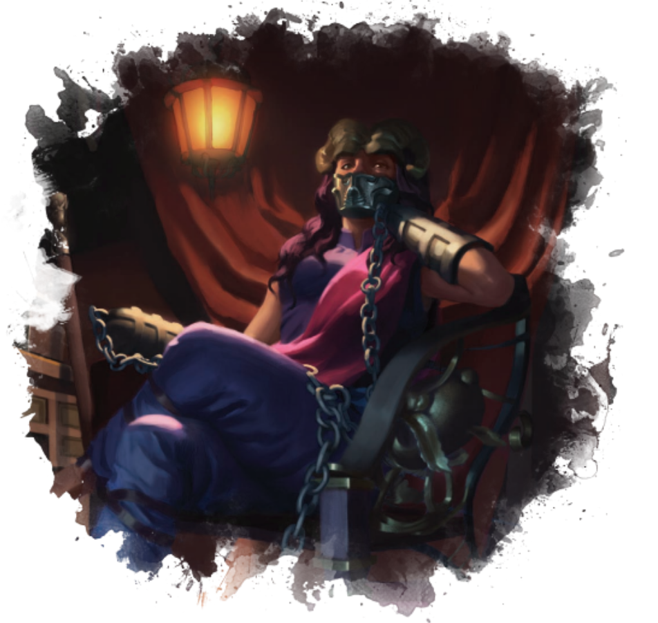 Baltazar średnio zainteresowany historią kapitana, postanowił rzucić okiem na stojący z boku wóz. Jego konstrukcja była wykonana z niezwykłą dbałością, ze wzmacnianego drewna i mocnych krat wykonanych z czarnej stali. Przed jego wejściem stało dwóch strażników, ostrzegających aby nie zbliżał się zbyt blisko wejścia. Gdy zawołał do środka, aby sprawdzić kto się w nim znajduje usłyszał szczęk łańcuchów, szelest tkaniny i w okienku ukazała się zakuta w specjalny kaganiec oraz metalowe rękawice przytwierdzone do podłoża kobieta diabelstwo.